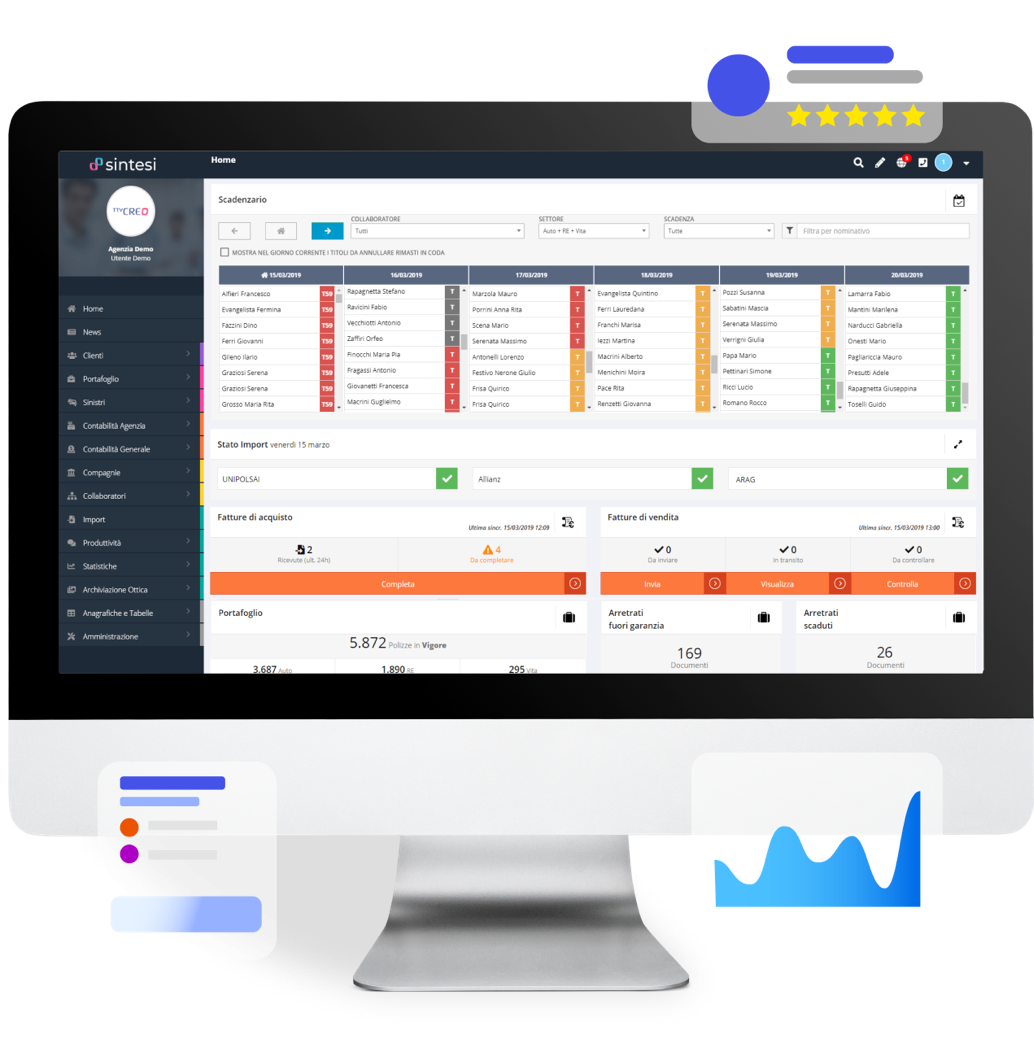 Sintesi consente di gestire tutte le attività operative dell’agenzia in modo semplice ed efficace, centralizzando le informazioni e favorendo la collaborazione di tutti i soggetti che operano nel contesto dell'agenzia.